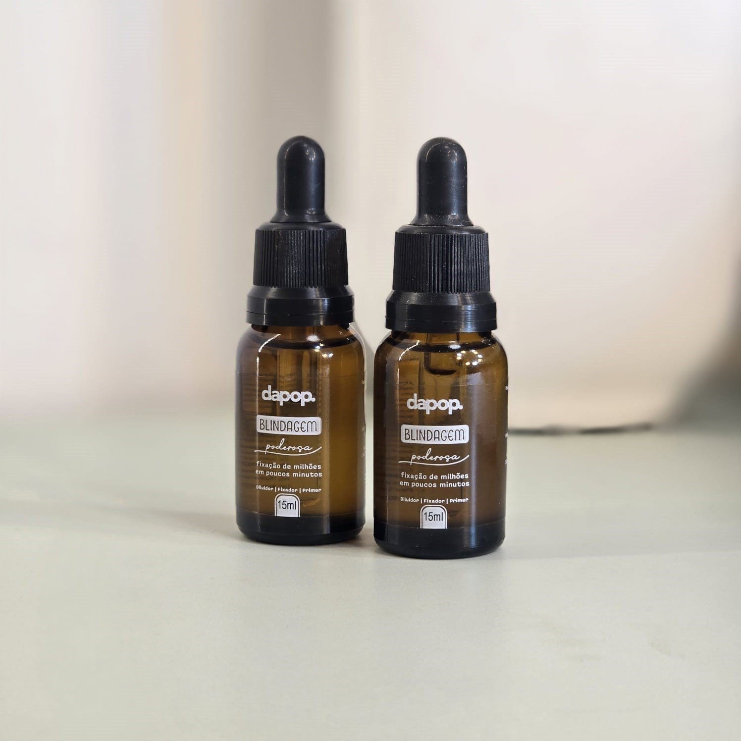 A Blindagem Poderosa da marca Dapop, um produto de maquiagem que serve como diluidor, fixador e primer.